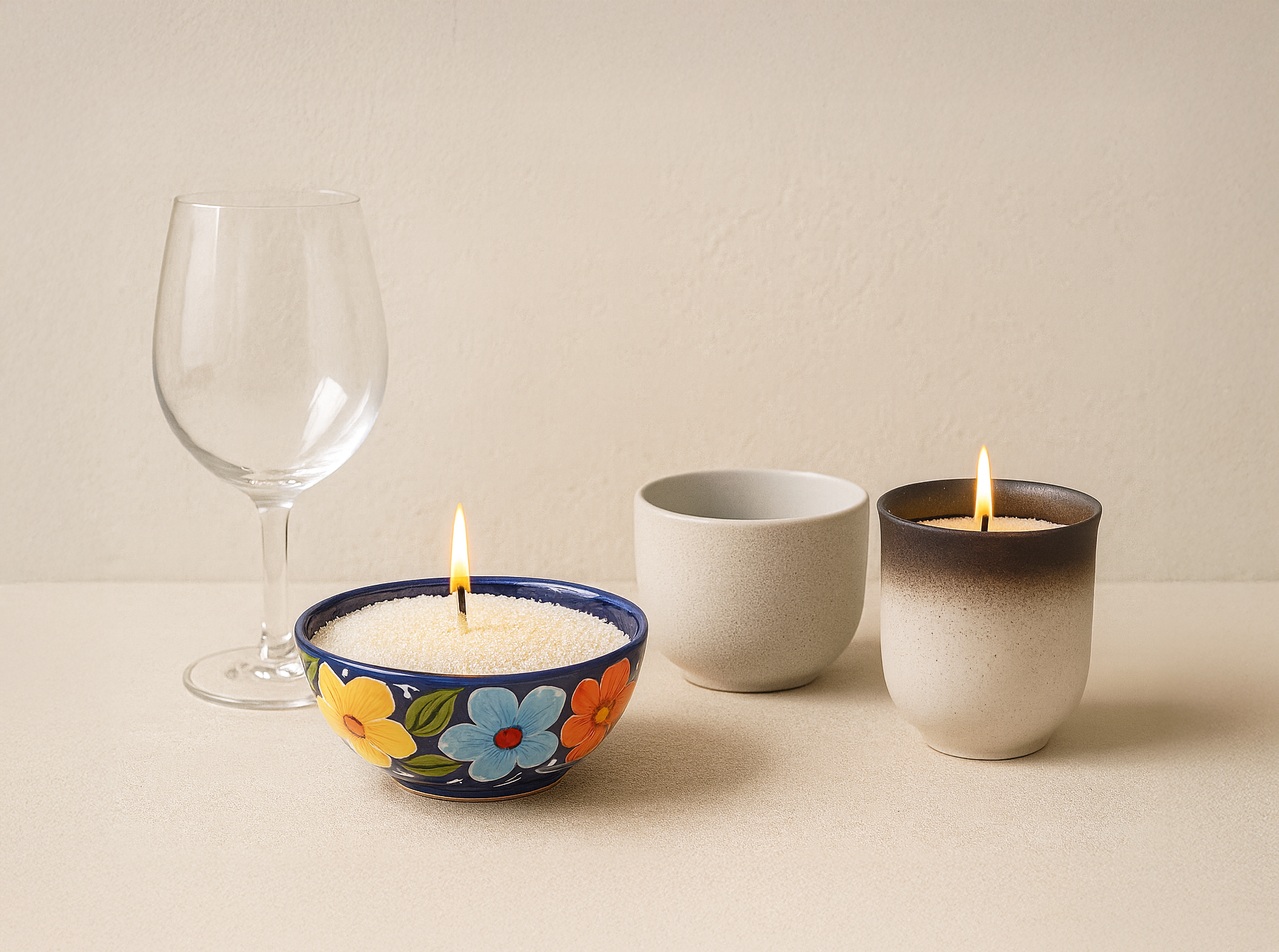 One product, endless possibilities. Candle Sand lets you turn almost any vessel into a candle — from repurposed jars to handmade ceramics.